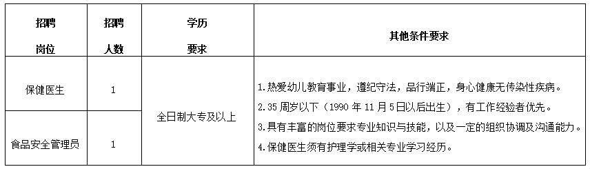 因學校工作需要,山西醫(yī)科大學幼兒園面向社會招聘保健醫(yī)生1名,食品安全管理員1名,用工形式采用勞務(wù)派遣制,現(xiàn)將有關(guān)事項公告如下: