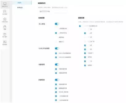 賬號設(shè)置時可以勾選管理員工的范圍和可以管理的權(quán)限