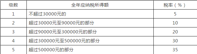 “(二)經(jīng)營(yíng)所得,適用百分之五至百分之三十五的超額累進(jìn)稅率(稅率表附后);