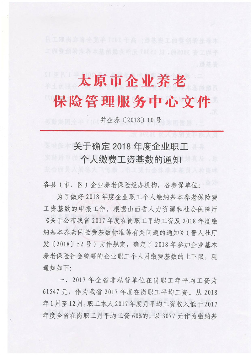 關(guān)于確定2018年度企業(yè)職工個(gè)人繳費(fèi)工資基數(shù)的通知