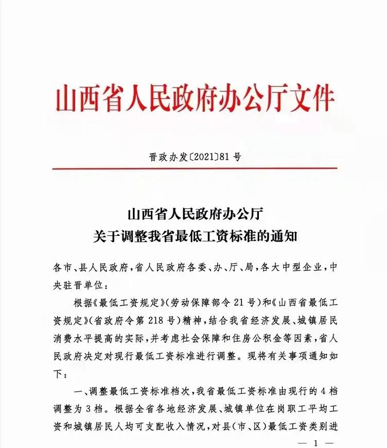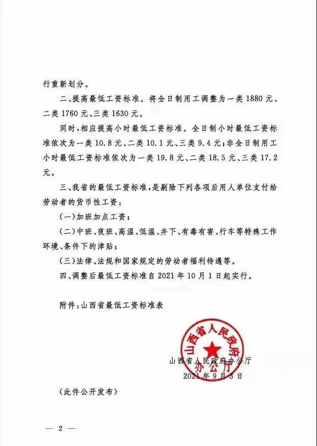山西省關于2021年調整我省******工資標準的通知,一類地區(qū)1880元,從10月1日起執(zhí)行