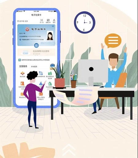 電子社??ㄊ菍嶓w社??ǖ木€上形態(tài),您在領取實體社??〞r同步生成。您可以登錄同步申領渠道經本人授權后直接使用電子社???,獲得便捷的人社服務,您也可以根據(jù)個人習慣選擇其他渠道申領和使用電子社??S時隨地查詢社保、找工作、接受技能培訓等。