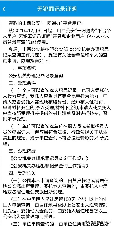 從2021年12月31起,平臺個人用戶“無犯罪記錄證明”開具和企業(yè)用戶“企業(yè)從業(yè)人員背景審查”功能停用。