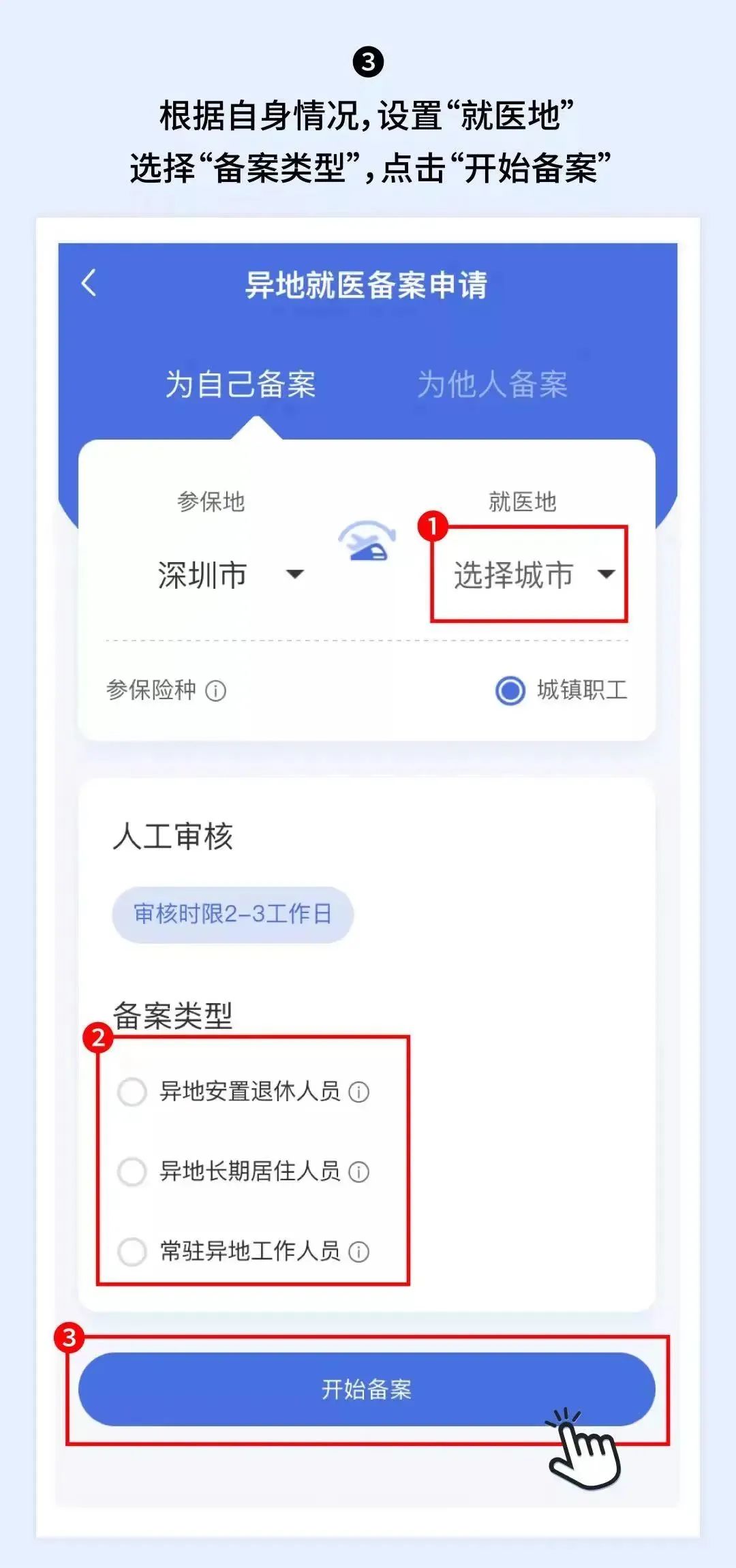 異地備案很簡單,一共只需要三個步驟:備案、確定醫(yī)院、持卡就醫(yī)。