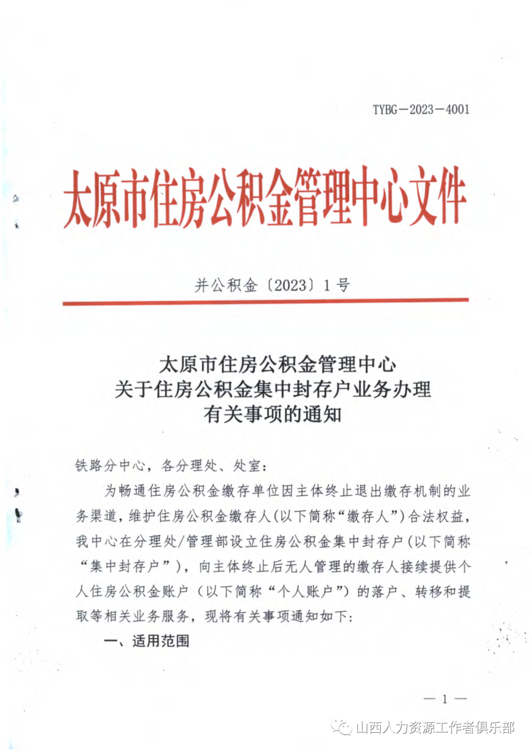 住房公積金因單位解散、破產(chǎn)等原因把個人賬戶轉(zhuǎn)入集中封存戶業(yè)務(wù)辦理通知,自2023年1月16日起執(zhí)行
