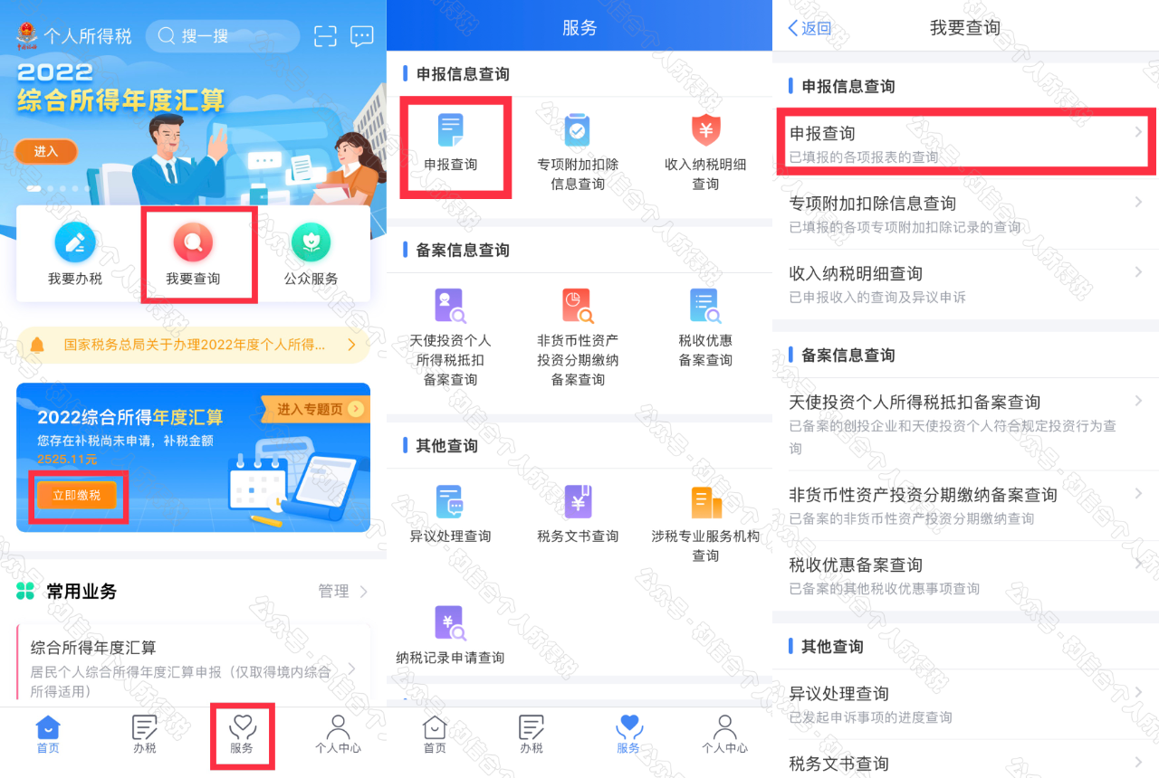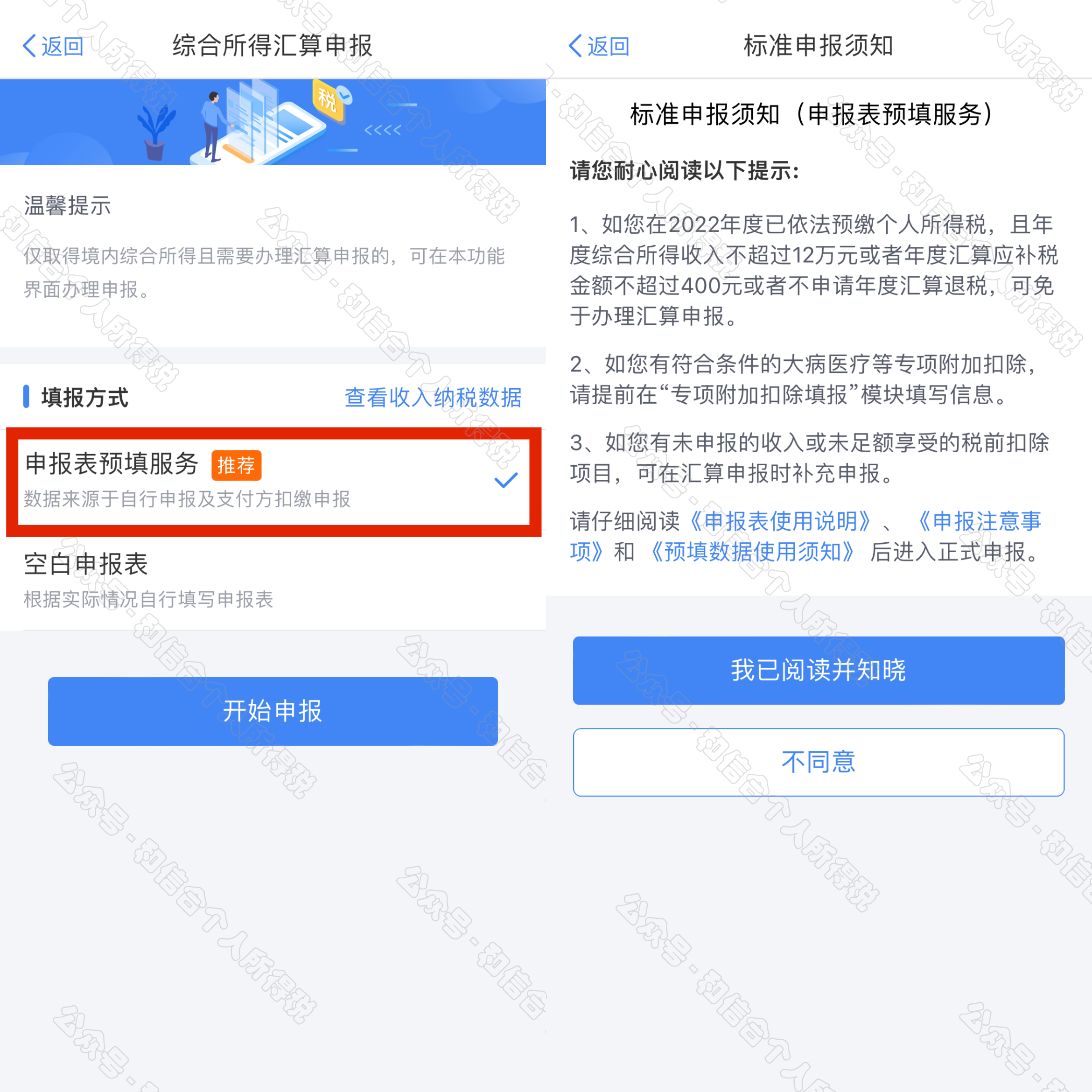 一是從首頁(yè)中間部位【2022綜合所得年度匯算】-【開(kāi)始申報(bào)】進(jìn)入;