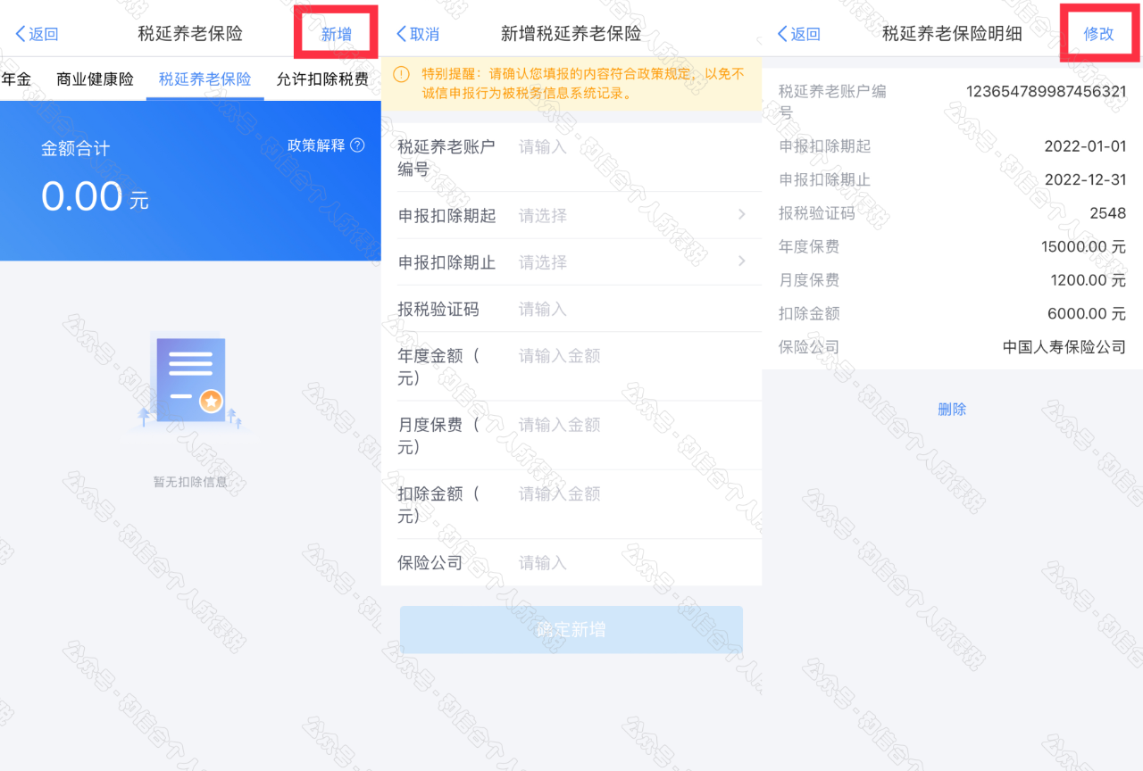 在個(gè)人養(yǎng)老金列表界面,您可進(jìn)行新增和修改。