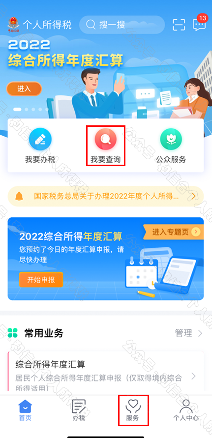 二是從首頁(yè)的【常用業(yè)務(wù)】區(qū)塊的【綜合所得年度匯算】進(jìn)入;