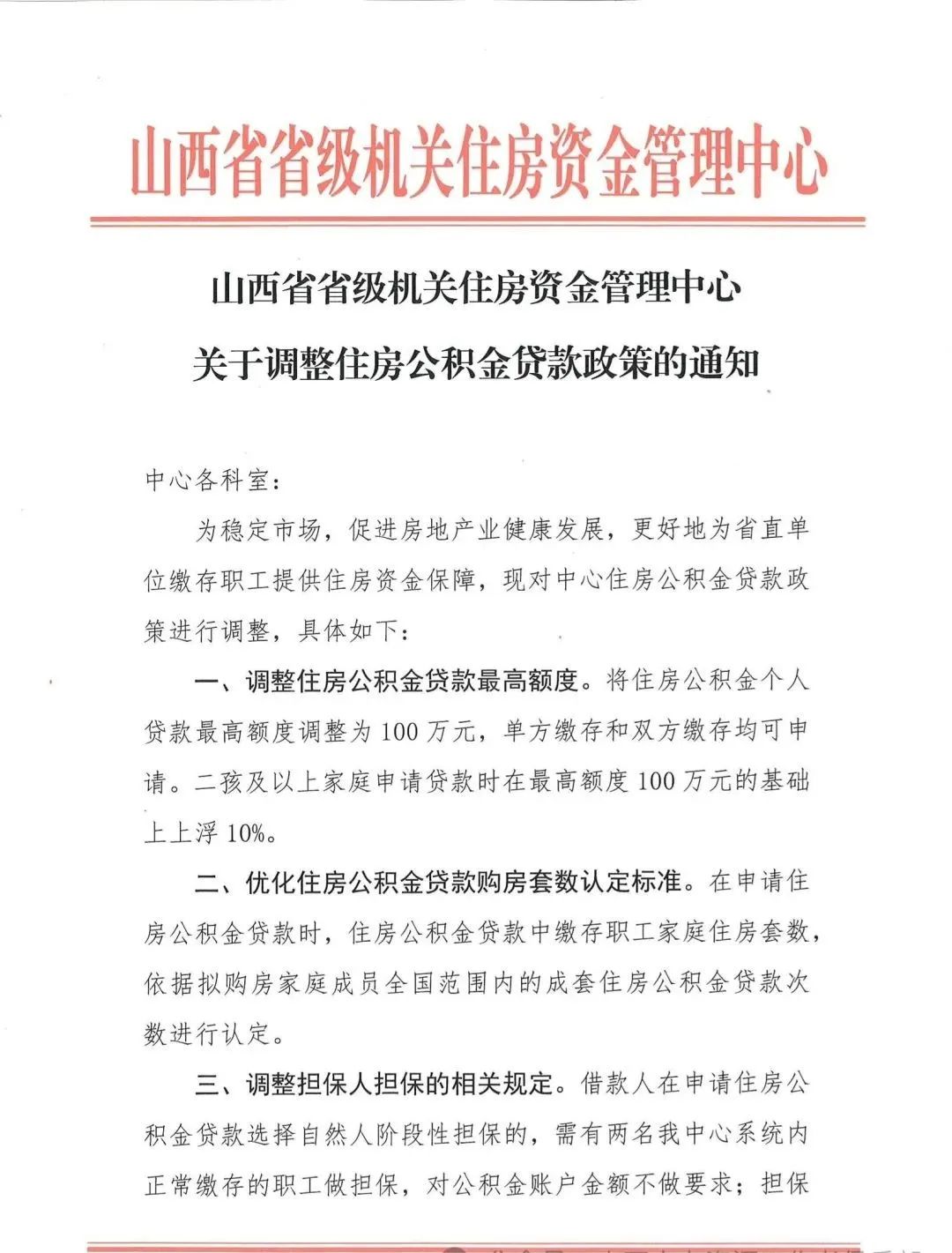 山西省調(diào)整住房公積金貸款政策,2024年5月10起執(zhí)行
