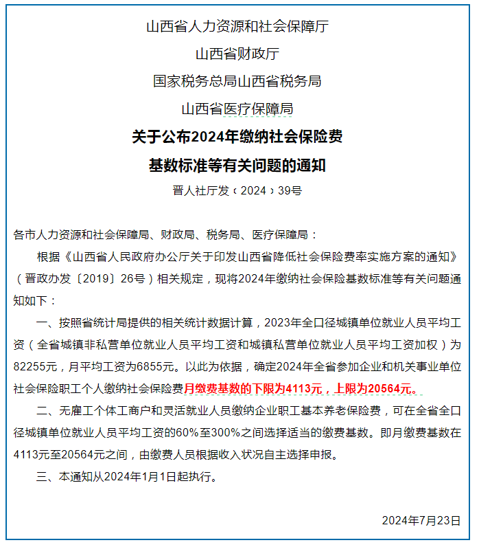 關(guān)于公布2024年繳納社會(huì)保險(xiǎn)費(fèi)基數(shù)標(biāo)準(zhǔn)等有關(guān)問(wèn)題的通知