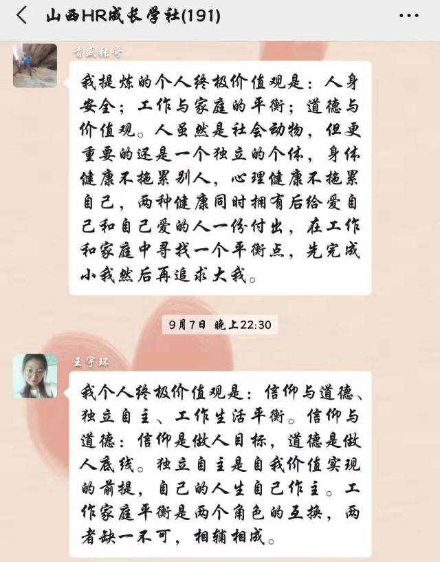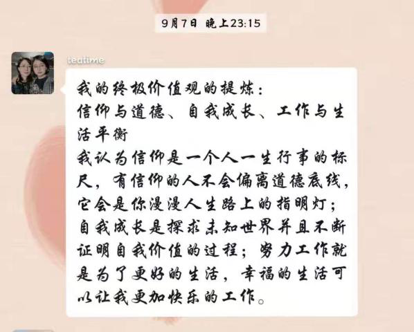 短暫的午間小憩后由明星學員杜春帶領著大家跳了一曲“蹦沙卡拉”,滿滿的激情與能量,各位學員再次滿血復活投入到了下午的課程當中。性格、興趣、勝任能力都充分了解后,怎樣才能走向職業(yè)巔峰呢?緊接著又一波測試來襲——價值觀測試,36個價值觀重視程度的選擇,8個非常重視再次層層篩選,***后每位學員都得到了自己的3個******價值觀,果然一千個人心中會有一千個哈姆雷特,大家互相分享著自己的選擇,激烈的討論著自己的******價值觀,課后依然回味無窮。