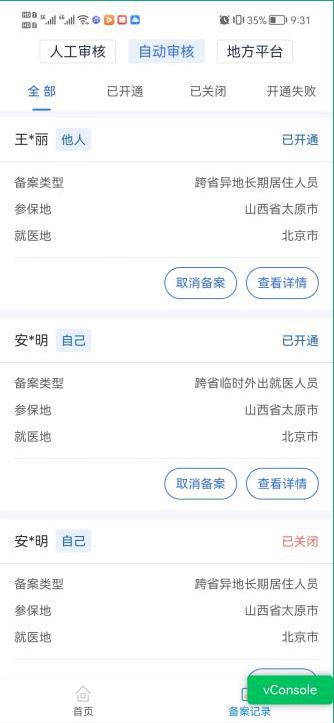 點擊右下角的備案記錄,選擇“自動審核”,可以查詢到自助備案的信息。