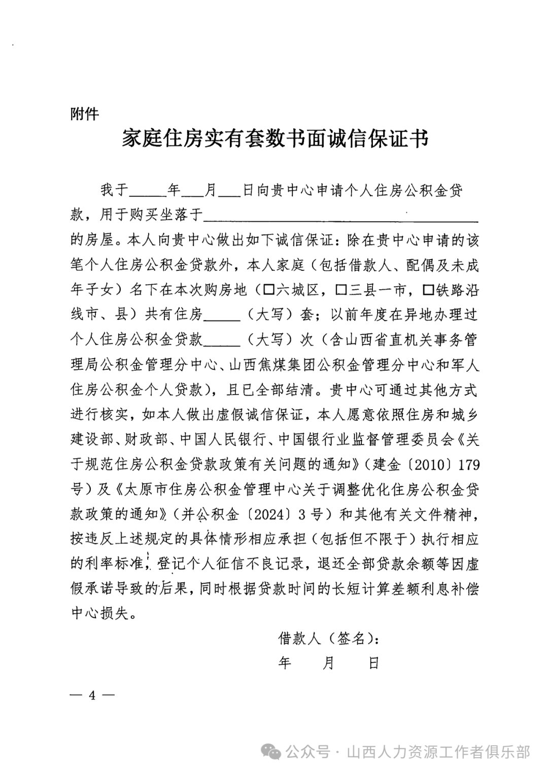 6.在太原市六城區(qū)購房的,以六城區(qū)房屋套數(shù)認(rèn)定;在三縣一市和鐵路沿線市(縣)購房的,以購房市(縣)房屋套數(shù)認(rèn)定。繳存職工申請貸款的,其房產(chǎn)記錄由中心工作人員通過信息系統(tǒng)聯(lián)網(wǎng)核查取得,三縣一市、鐵路分中心繳存職工購買住房申請住房公積金貸款的,應(yīng)由其提供其購房地不動產(chǎn)登記部門出具的書面房產(chǎn)查詢結(jié)果;住房公積金貸款記錄通過全國住房公積金監(jiān)管 服務(wù)平臺、公積金管理信息系統(tǒng)、異地貸款職工住房公積金繳存使用證明及繳存職工個人征信報告等有關(guān)渠道取得。繳存職工辦 理貸款時需同時簽署《家庭住房實有套數(shù)書面誠信保證書》。